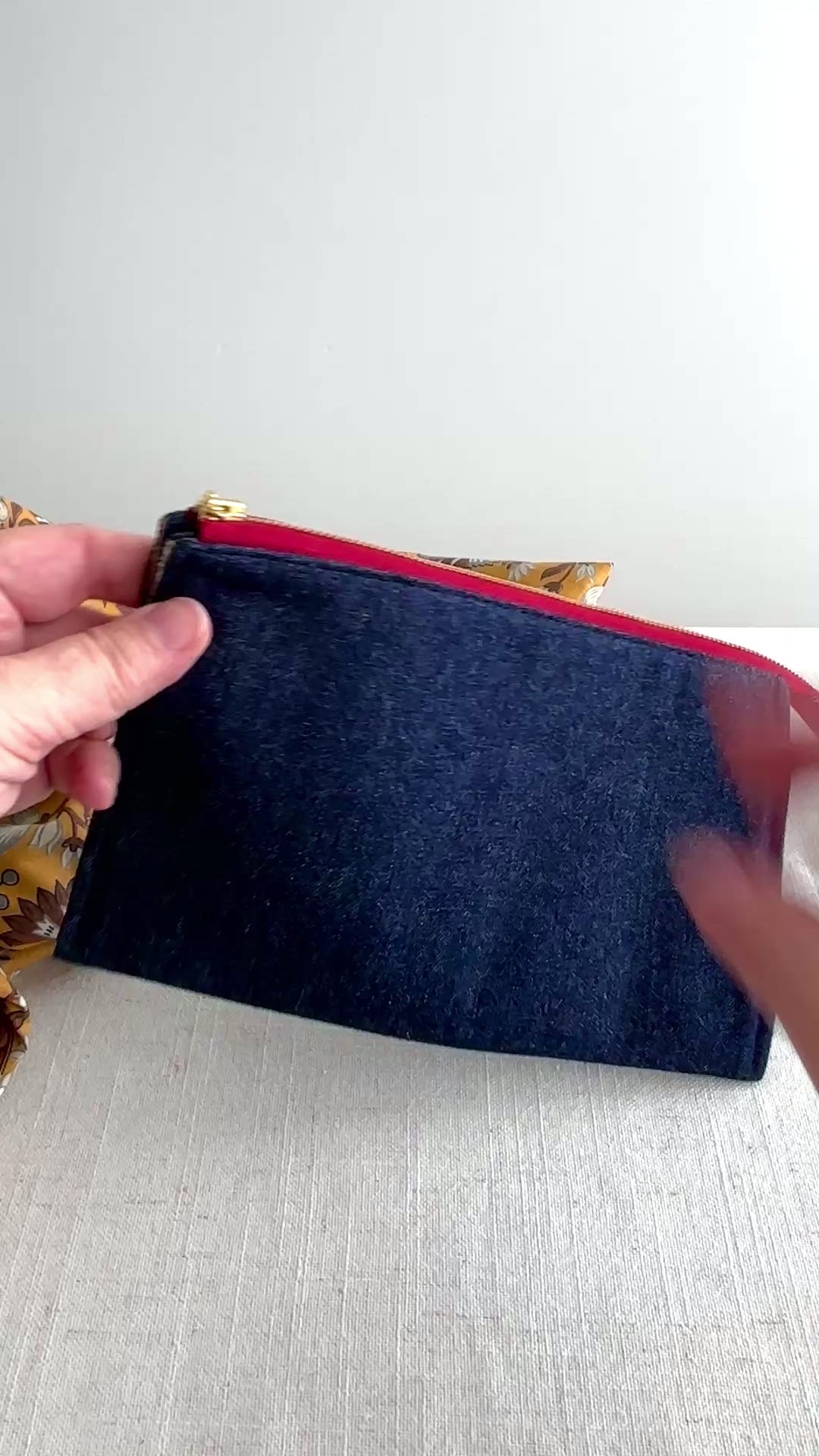 Pocket Bag - Needlepoint Project Bag - Metallic Gold Denim with Red Interior